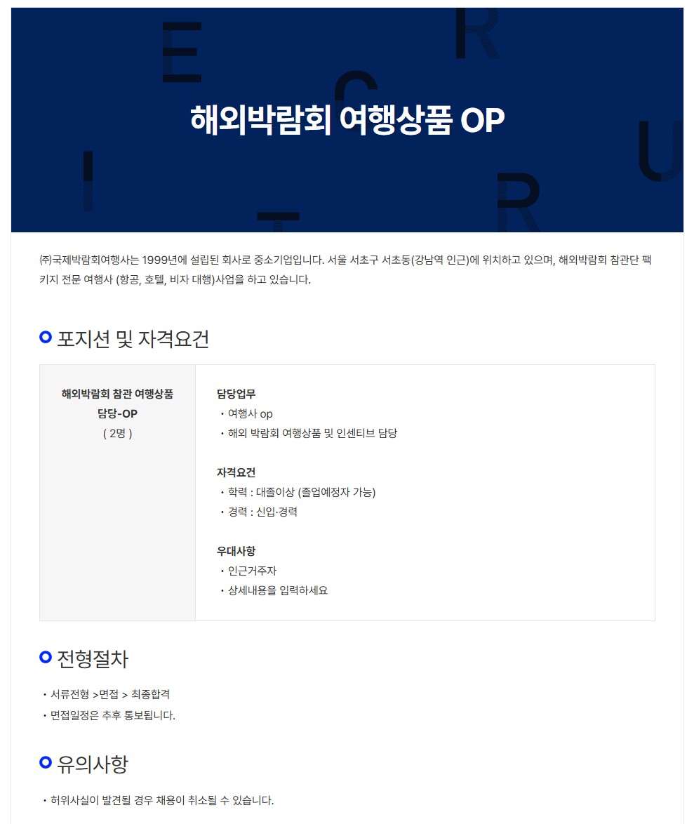 [㈜국제박람회여행사] OP-여행상품 오퍼레이터