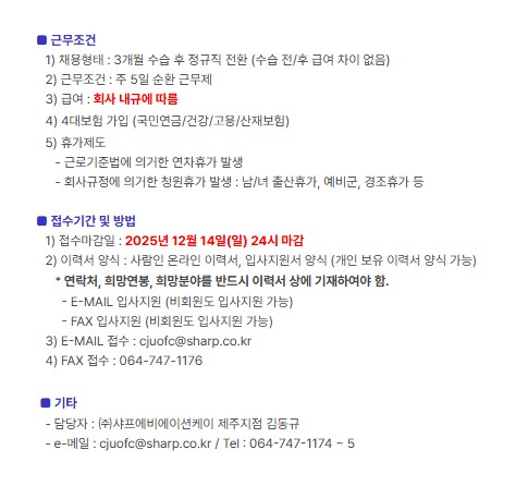 [㈜샤프에비에이션케이] 제주공항 외항사 여객운송 지상직 신입사원 모집