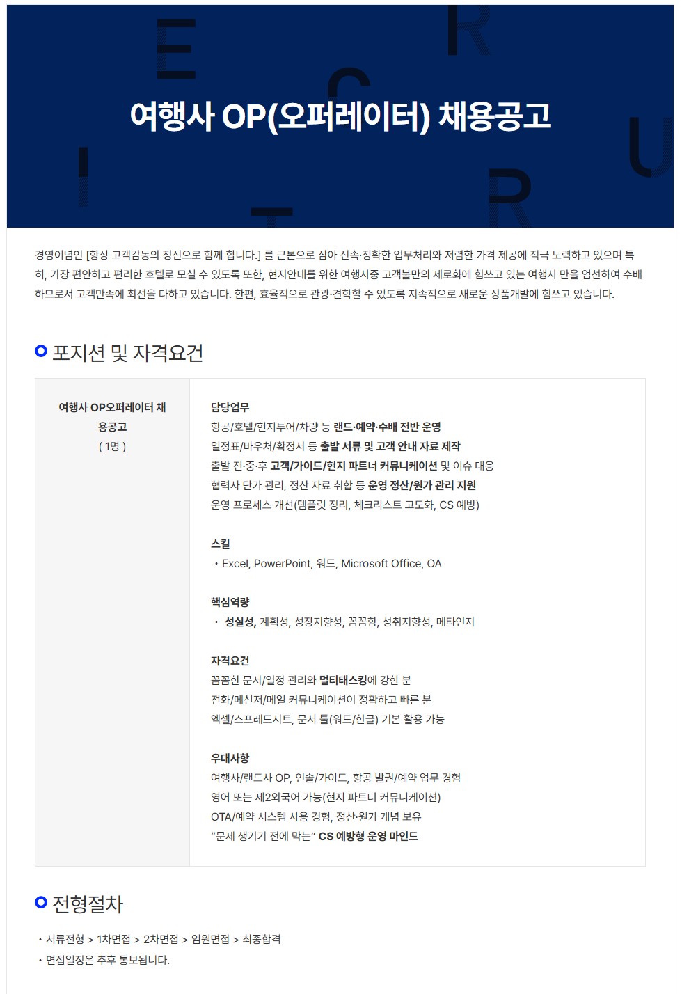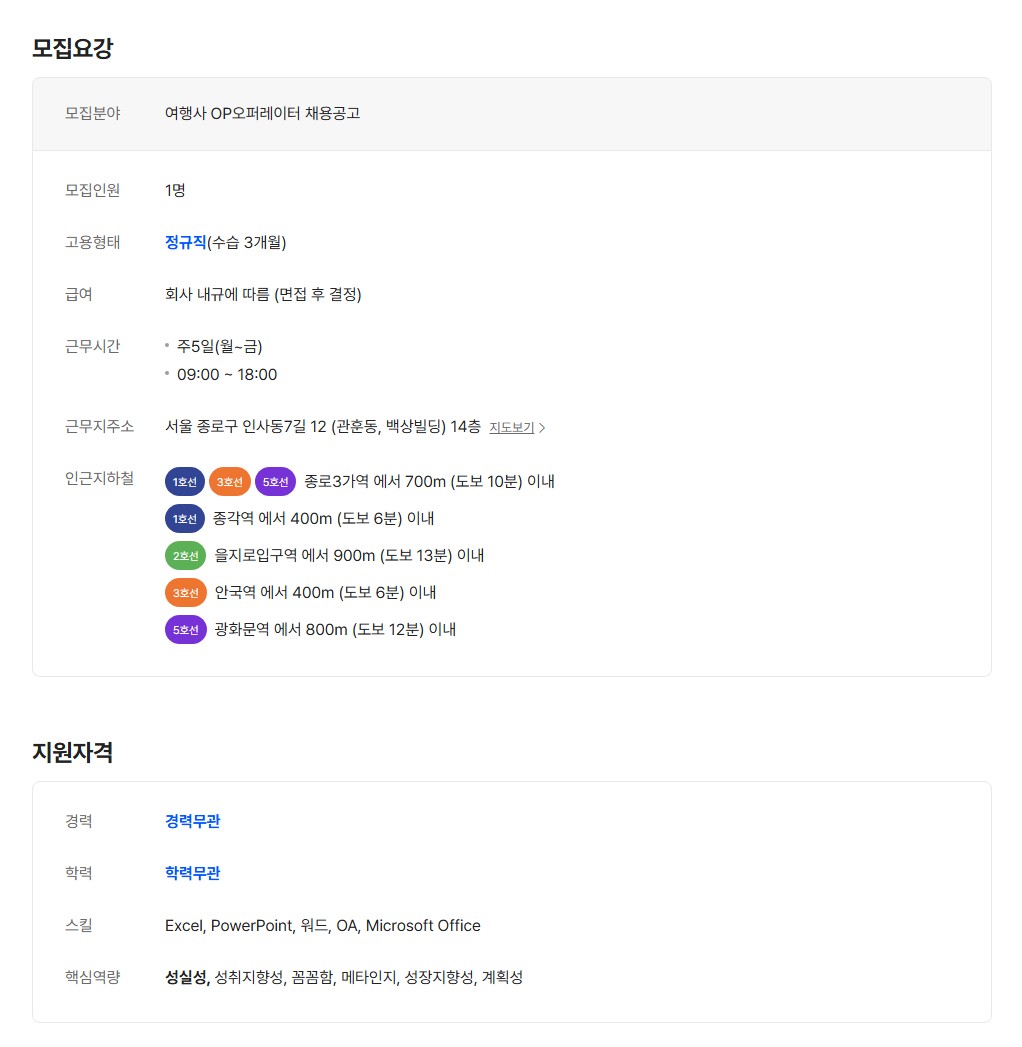 [㈜세륜여행사] 여행사 OP(오퍼레이터) 채용공고