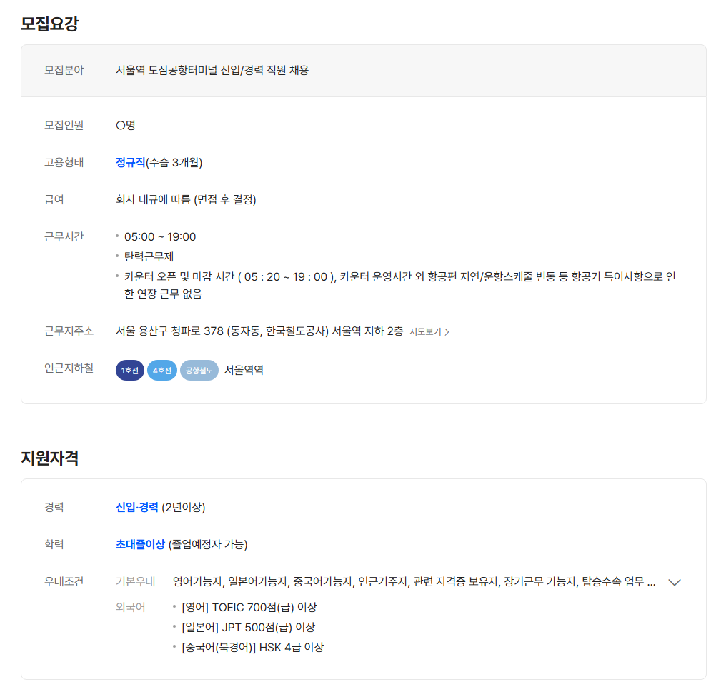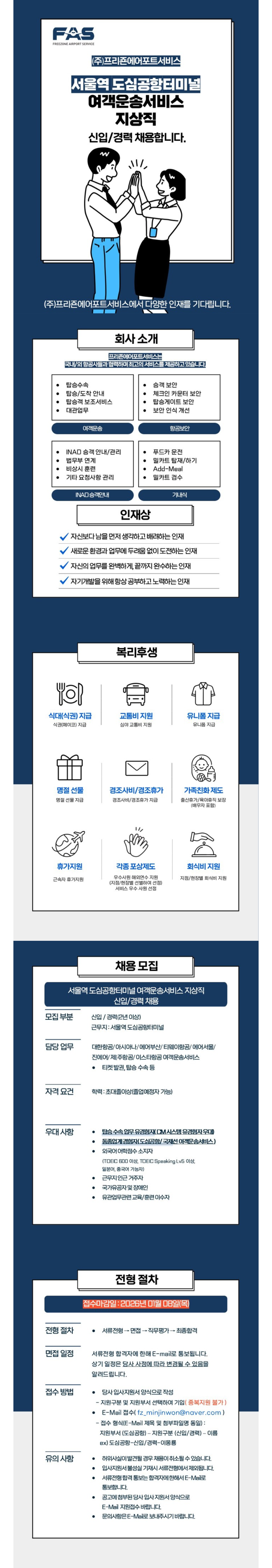 [㈜프리죤] 서울역 도심공항터미널 체크인 카운터 여객서비스 신입/경력 직원 채용