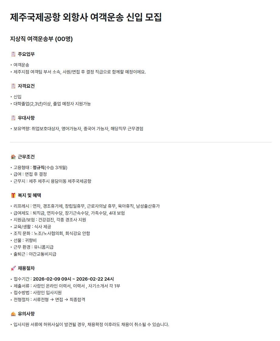 [샤프에비에이션케이] 제주국제공항 외항사 여객운송 신입 모집