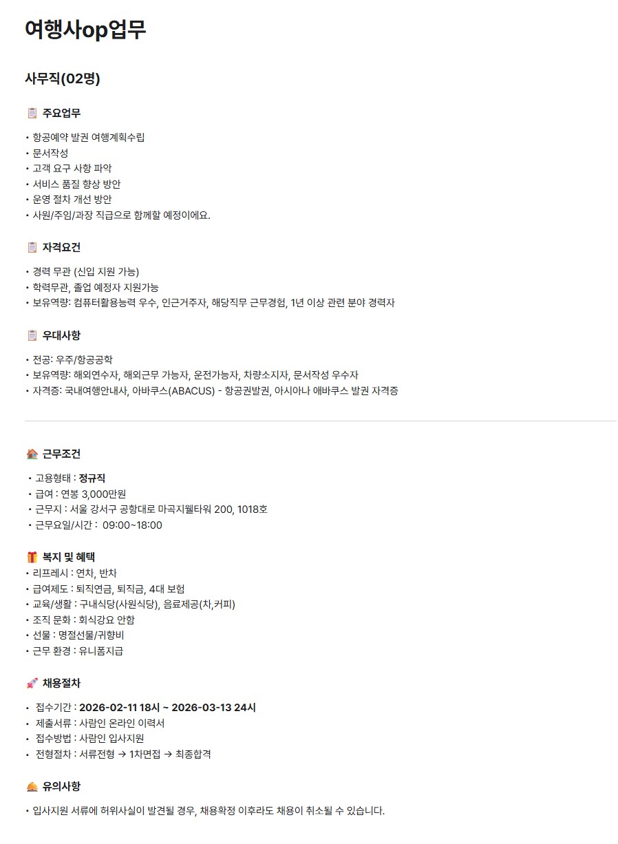 [(주)세중쓰어데스크 코리아] 여행사 op 업무