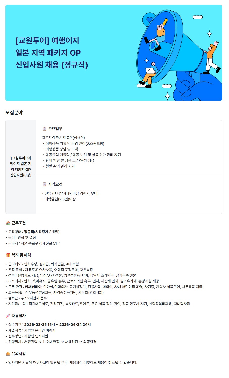 [교원투어] 여행이지 일본 지역 패키지 여행상품 OP 채용