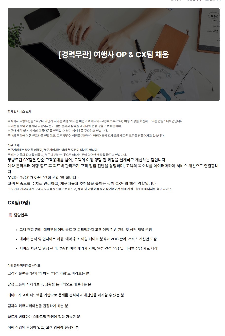 [(주)무빙트립] 여행사 OP & CX팀 채용