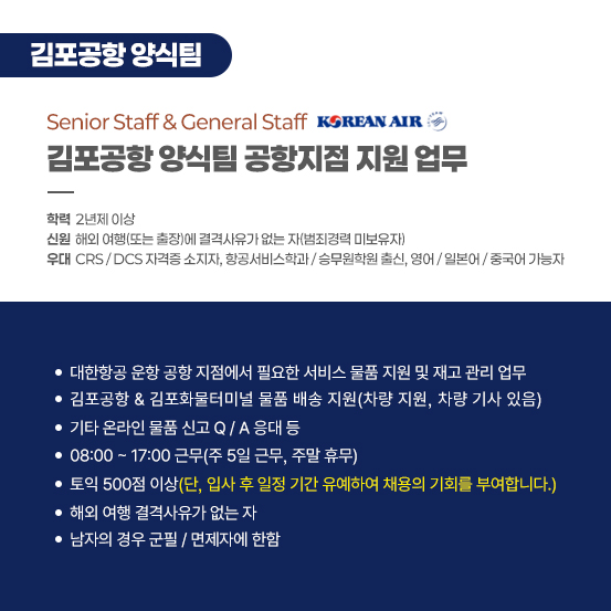 [ANC 정회원 추천채용] MPK 대한항공 김포공항 여객운송업무(지상직) 10월 정규 채용
