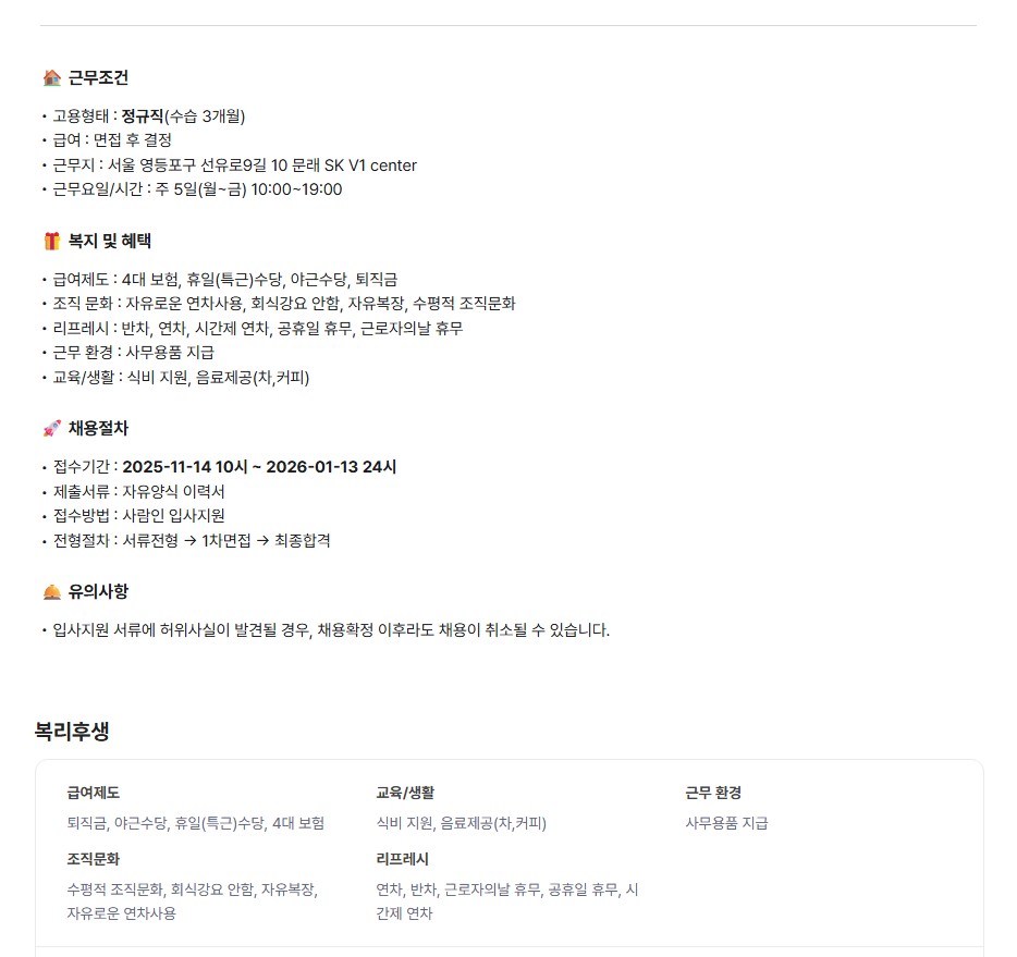 https://www.saramin.co.kr/zf_user/jobs/relay/view?isMypage=no&rec_idx=52308287&recommend_ids=eJxtkMsNQyEMBKvJfW1j1ntOIfTfRZ7ywUR6x2GMR5BuleFcZXzwmW4ZWbEEf6NHjaFtG9f4HMxJtDe5%2F41DEz%2B0KkGjhwkDO1VU1Q1%2BU7CUjtS41ttRvt7Ruz1V3PaSxcptMdPY6LLIaDQSx49MAHHcpZ0hKYAbXOMFp1xLyw%3D%3D&view_type=search&searchword=%EC%97%AC%ED%96%89%EC%82%AC+OP&searchType=recently&gz=1&t_ref_content=generic&t_ref=search&relayNonce=e1e714c8a005869c4990&paid_fl=n&search_uuid=e64b424c-b2b2-4a94-9a80-64f3d3b71e26&immediately_apply_layer_open=n#seq=0