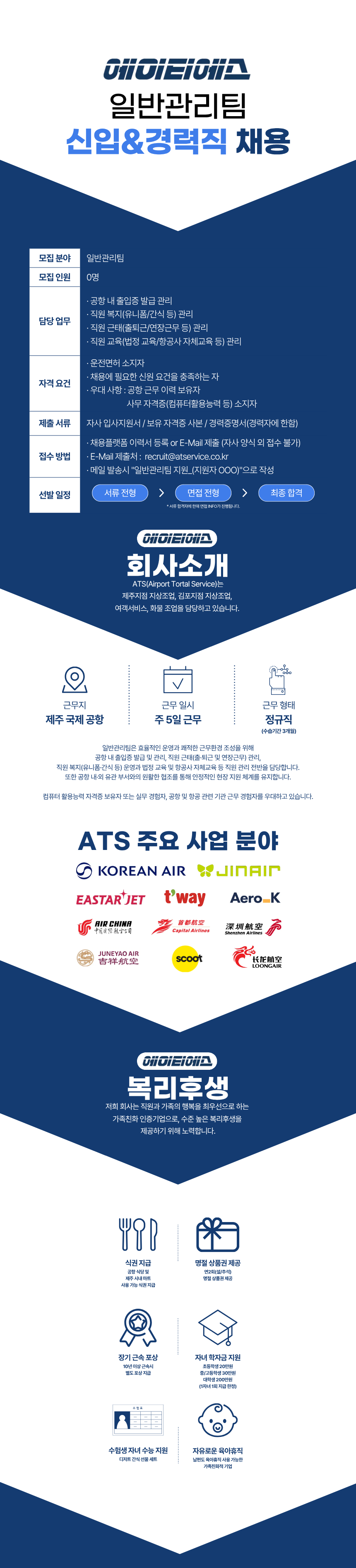 [(주)에이티에스] 일반관리팀 신입&경력직 채용