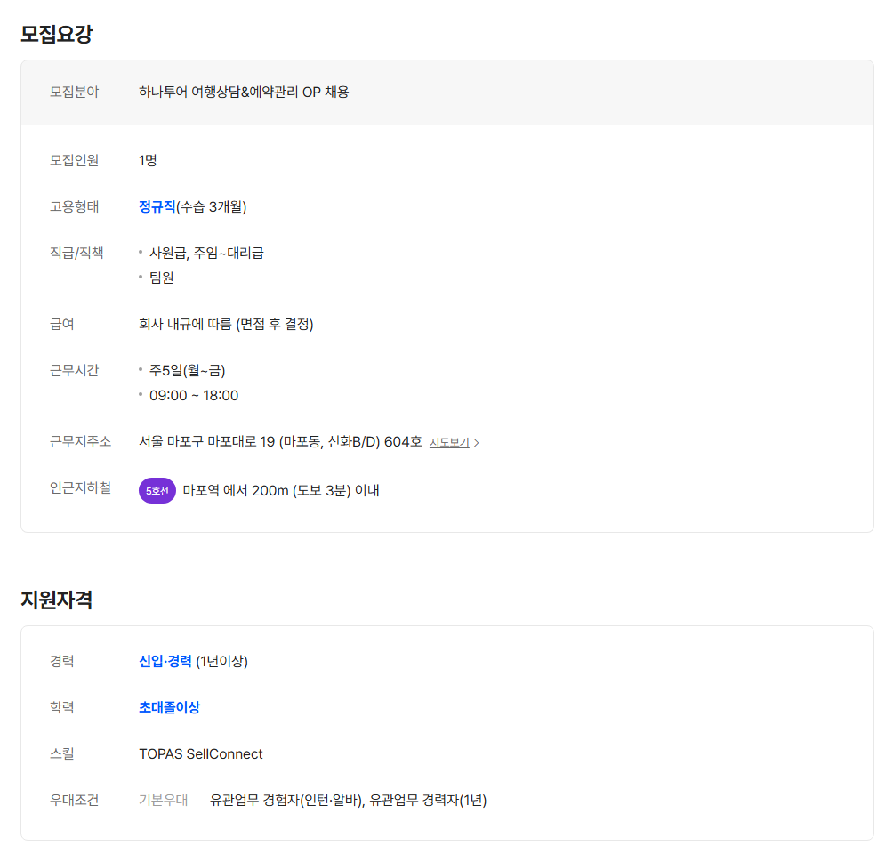 [(주)새서울여행사] 하나투어 여행상담&예약관리 OP 채용