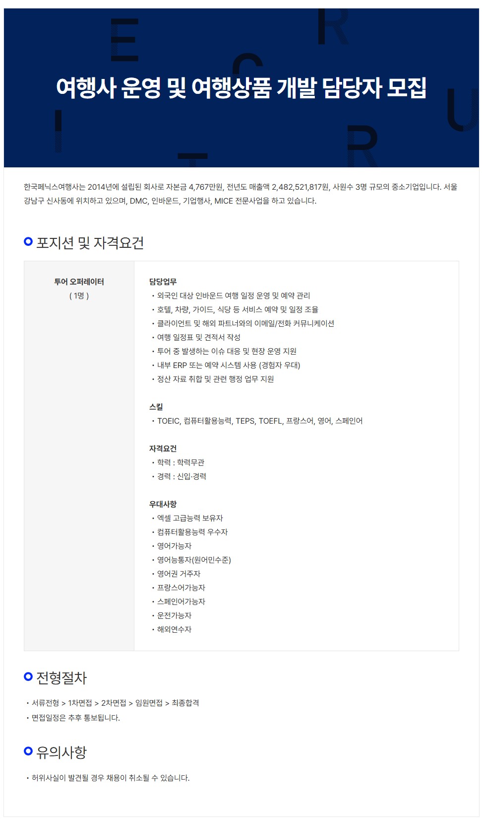 [한국페닉스여행사] 여행사 운영 및 여행상품 개발 담당자 모집