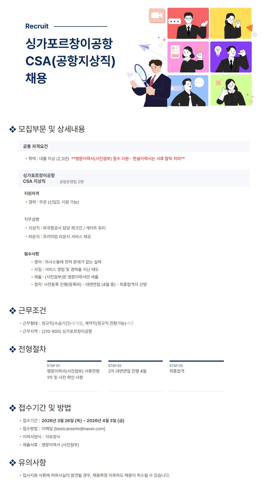 2026년도 싱가포르창이공항 CSA(공항지상직) 채용
