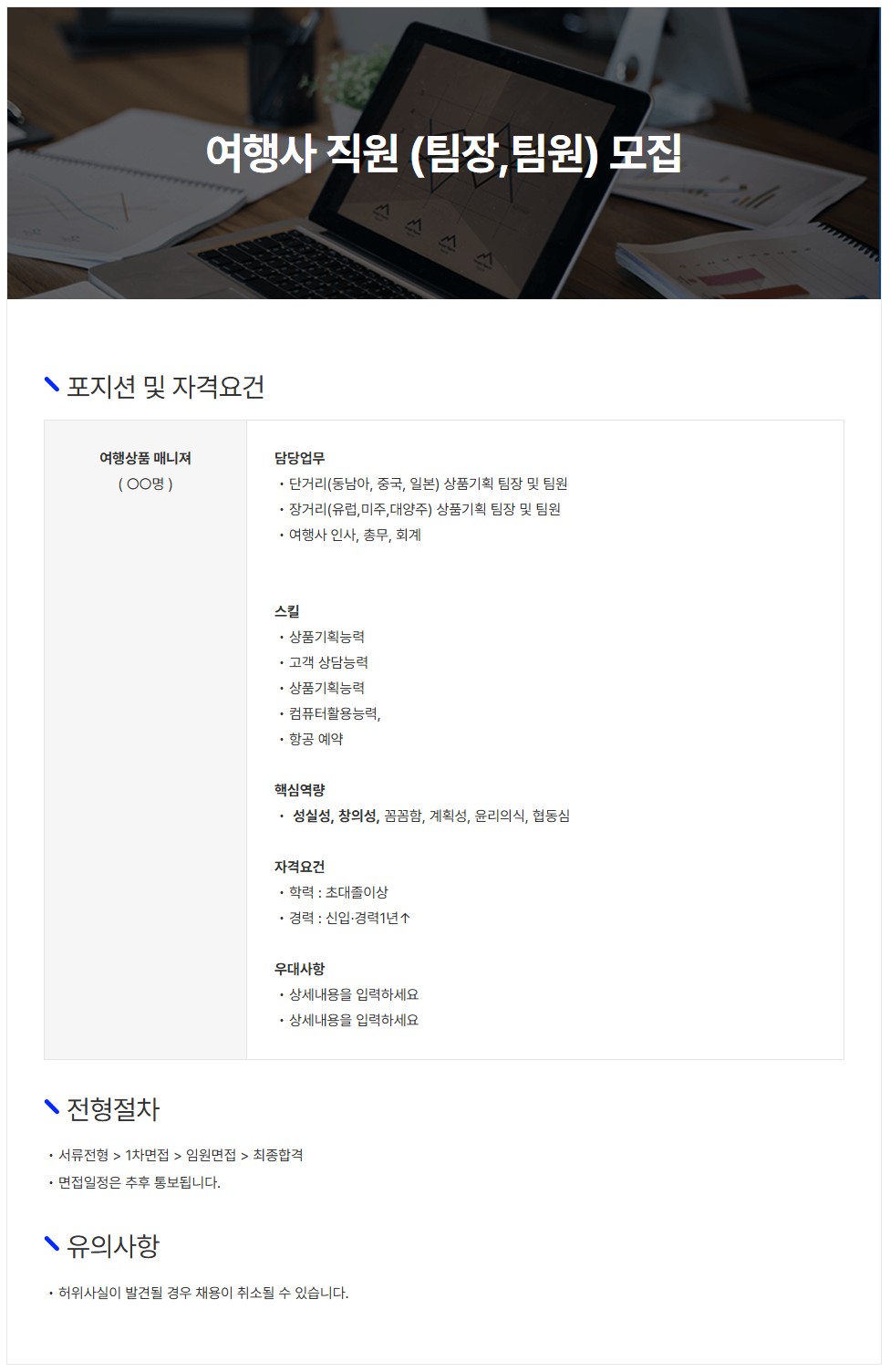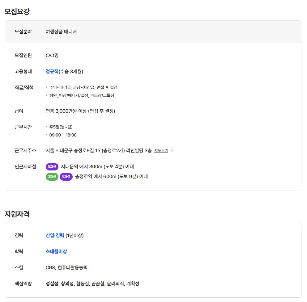 [㈜엘리온투어] 여행사 직원 (팀장,팀원) 모집