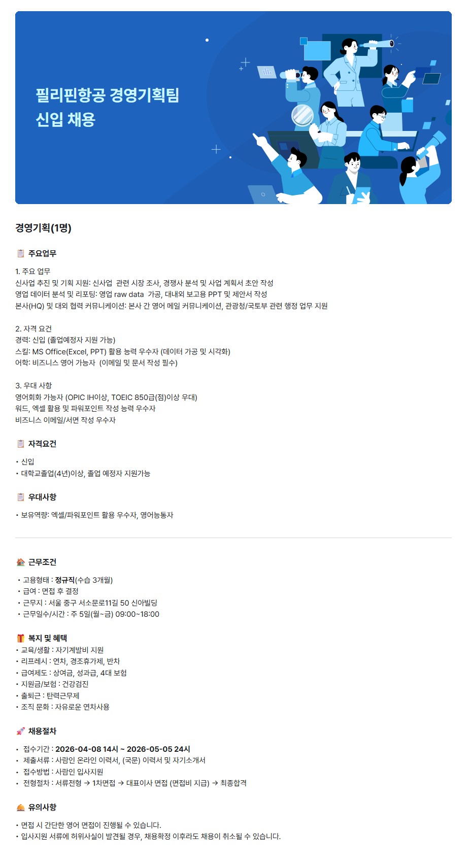[필리핀항공] GSA 락소홀딩스 경영기획팀 신입 채용
