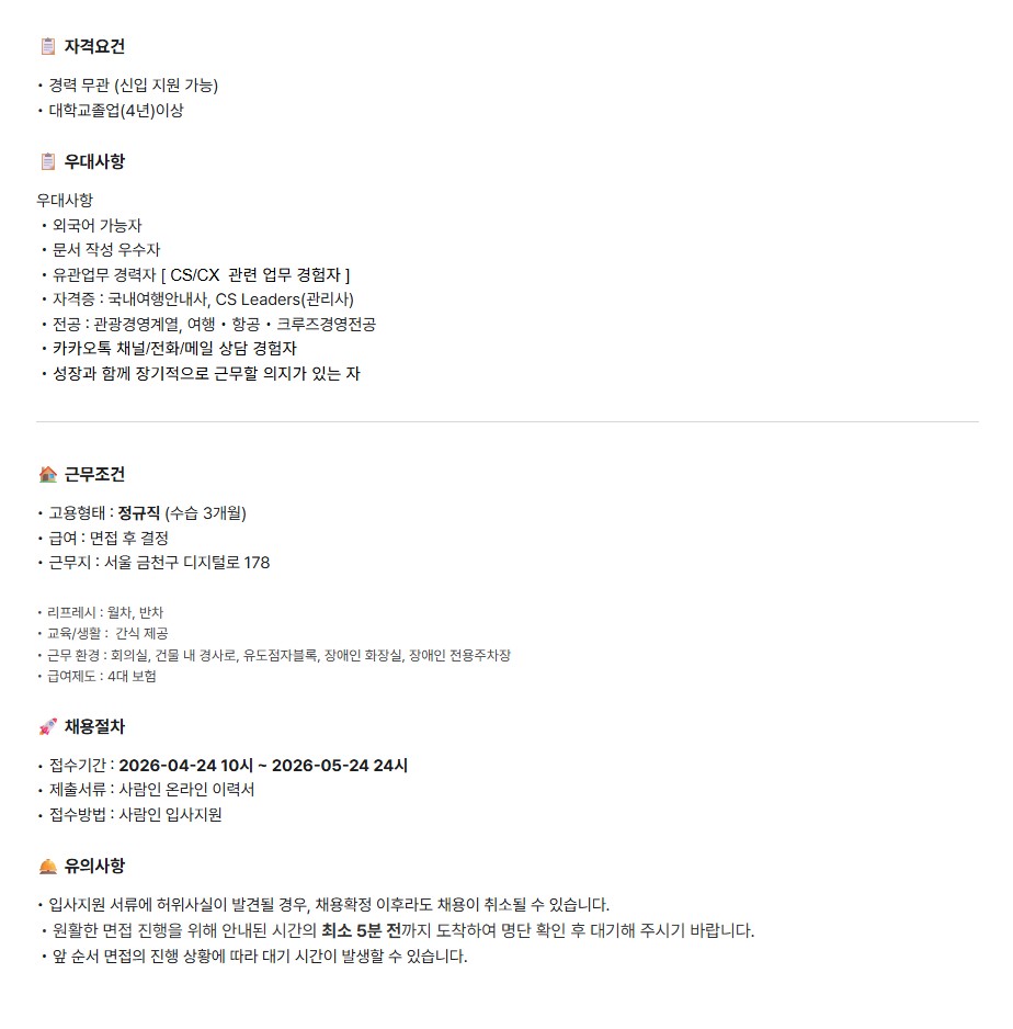 [(주)무빙트립] 여행사 OP & CX팀 채용