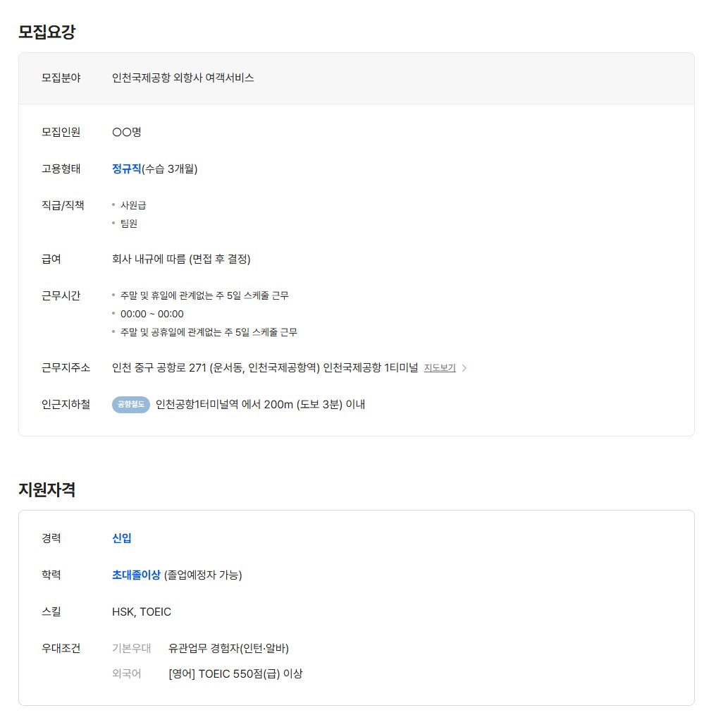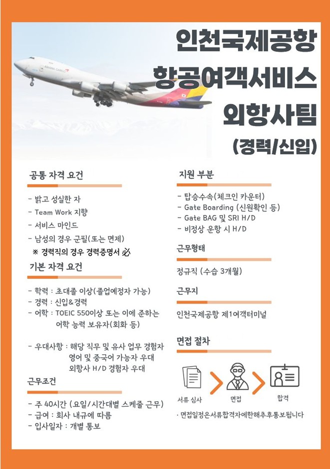 [유니에스] 인천국제공항 외항사 여객서비스 직원 채용 (경력/신입)
