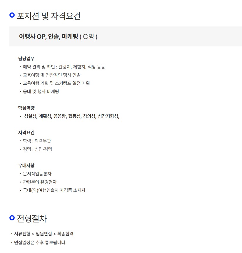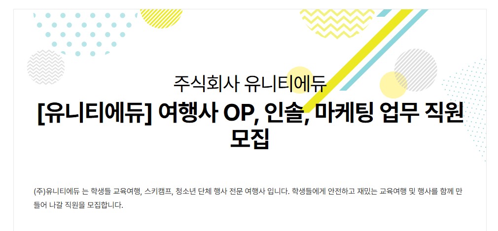 [유니티에듀] 여행사 OP, 인솔, 마케팅 업무 직원 모집