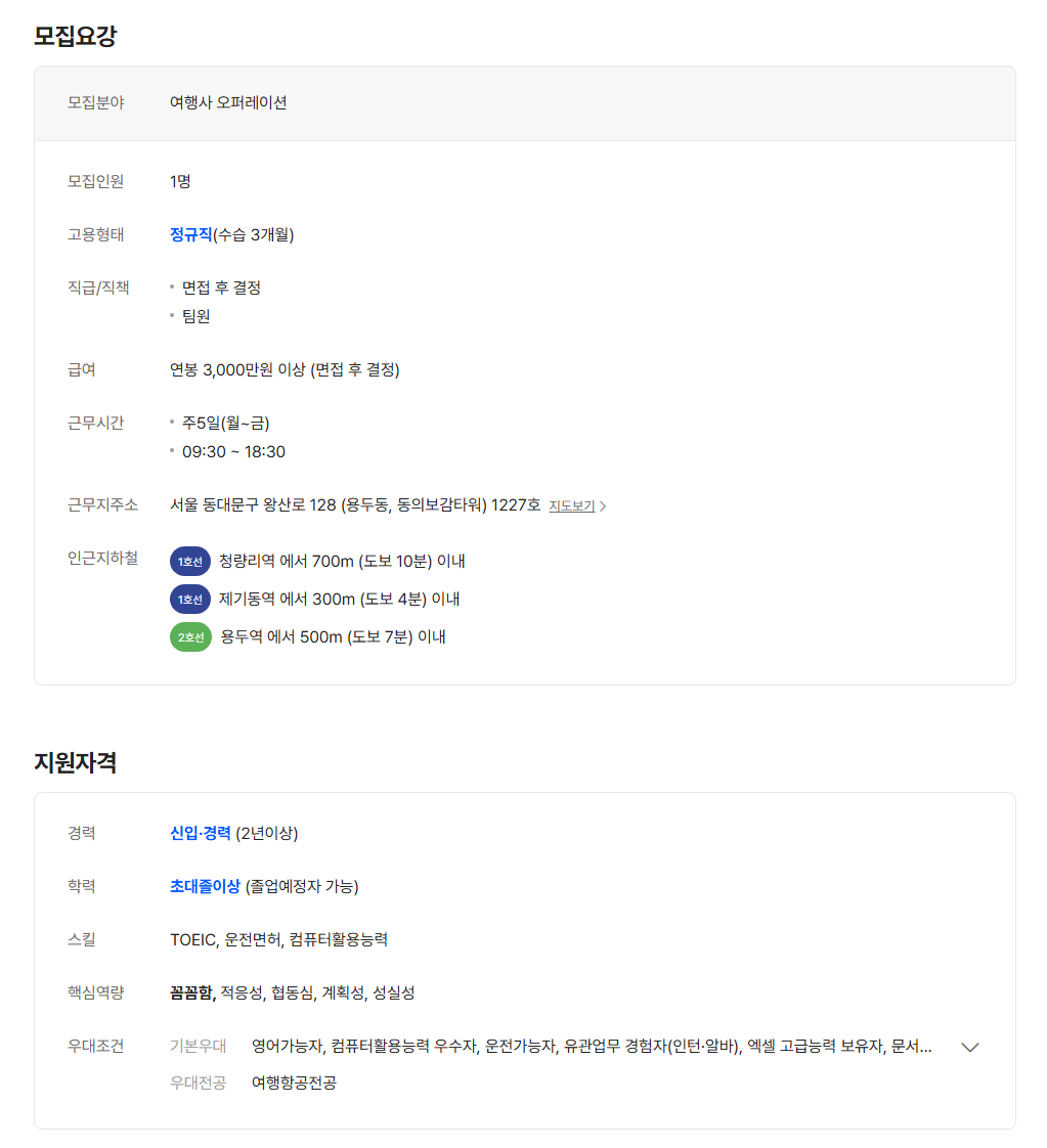 [제니스트래블] 여행사 오퍼레이션 담당자 (신입/경력) 모집