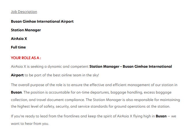 [에어아시아] 김해공항 Station Manager 경력 채용(지점장)