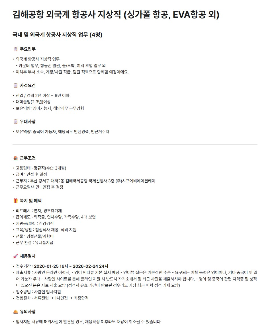 ​​​​​​​[샤프에비에이션케이] 김해공항 외국계 항공사 지상직 (싱가폴 항공, EVA항공 외)