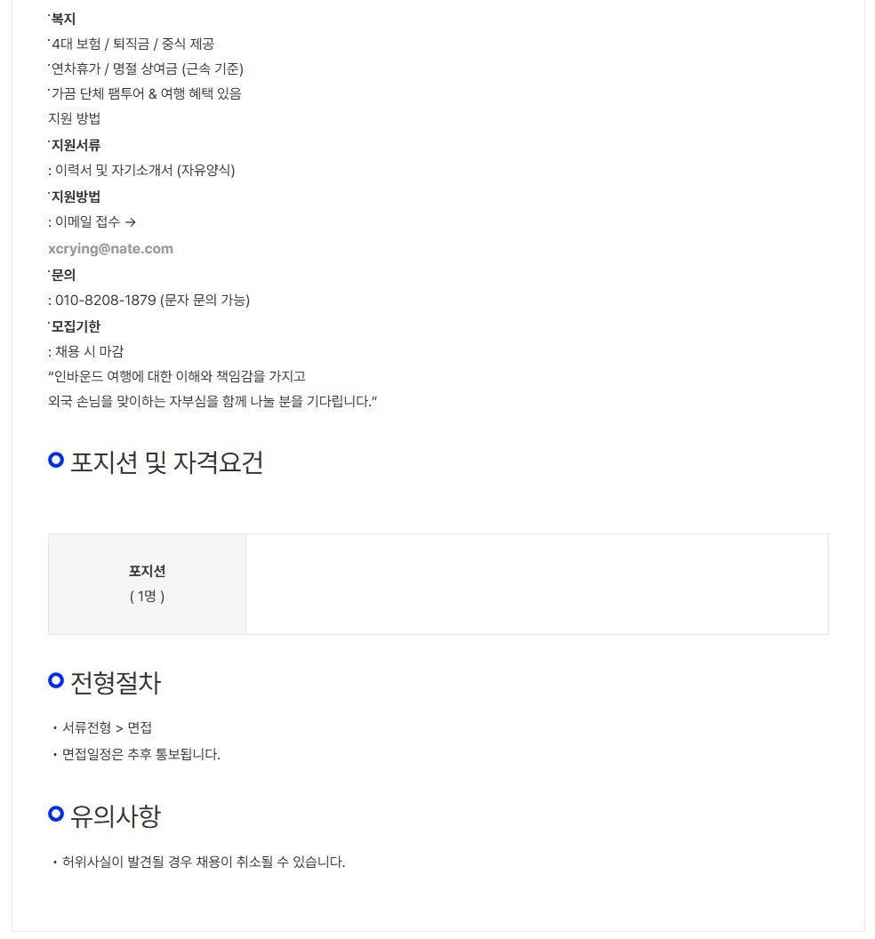 [(주)명인여행사] 명인여행사에서 함께하실 OP 사무직 모집합니다