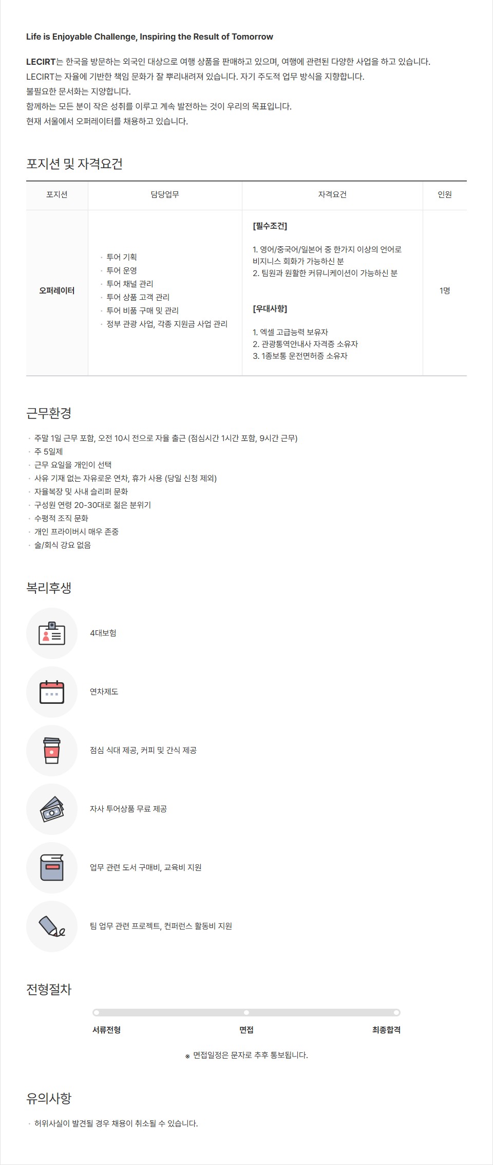 [레서트㈜] 여행사 서울 오퍼레이터 채용