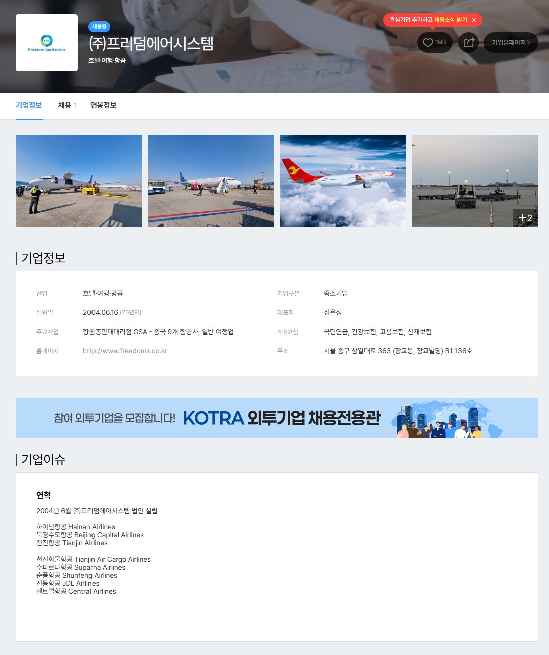 [㈜프리덤에어시스템] 중국계 항공사 인천공항 여객/화물 운항업무