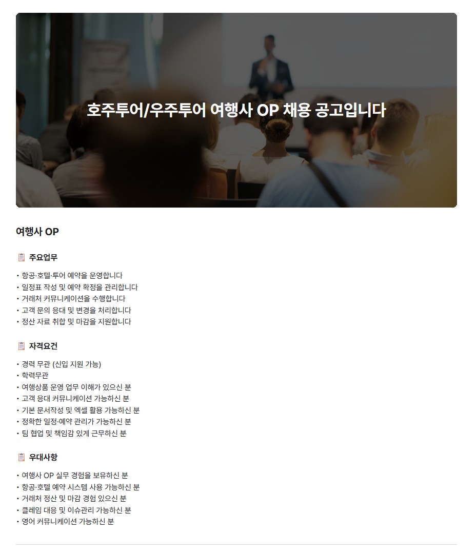 호주투어/우주투어 여행사 OP 채용 공고